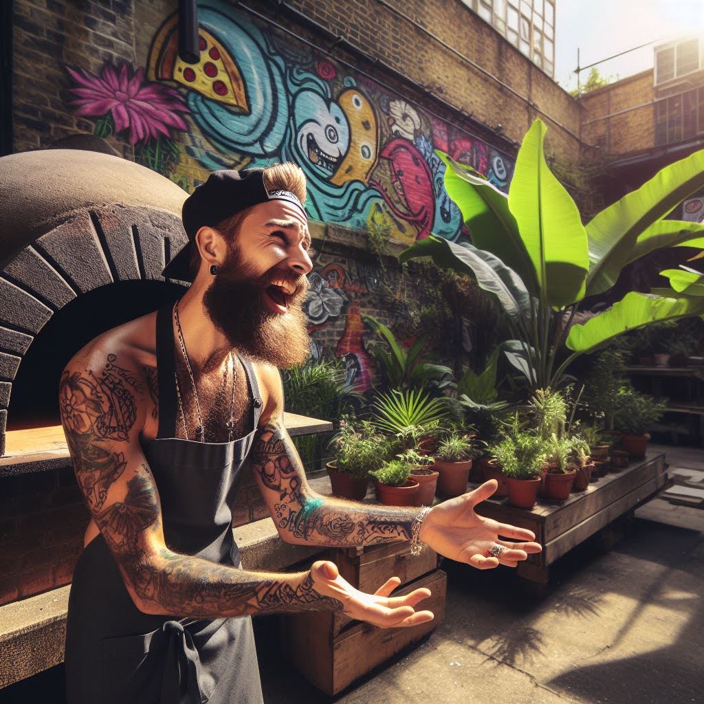 Industrial spaces are often associated with cold, concrete structures, devoid of natural beauty. But what if we told you it’s possible to create an oasis of lush greenery and culinary delights in such spaces? In this post, we will explore the exciting realm of garden design in industrial spaces, combining exotic lush planting with the addition of a pizza oven. You’ll also get to meet some of our fantastic pizzaiolos from the world of Dall-E along the way as we discuss the process!